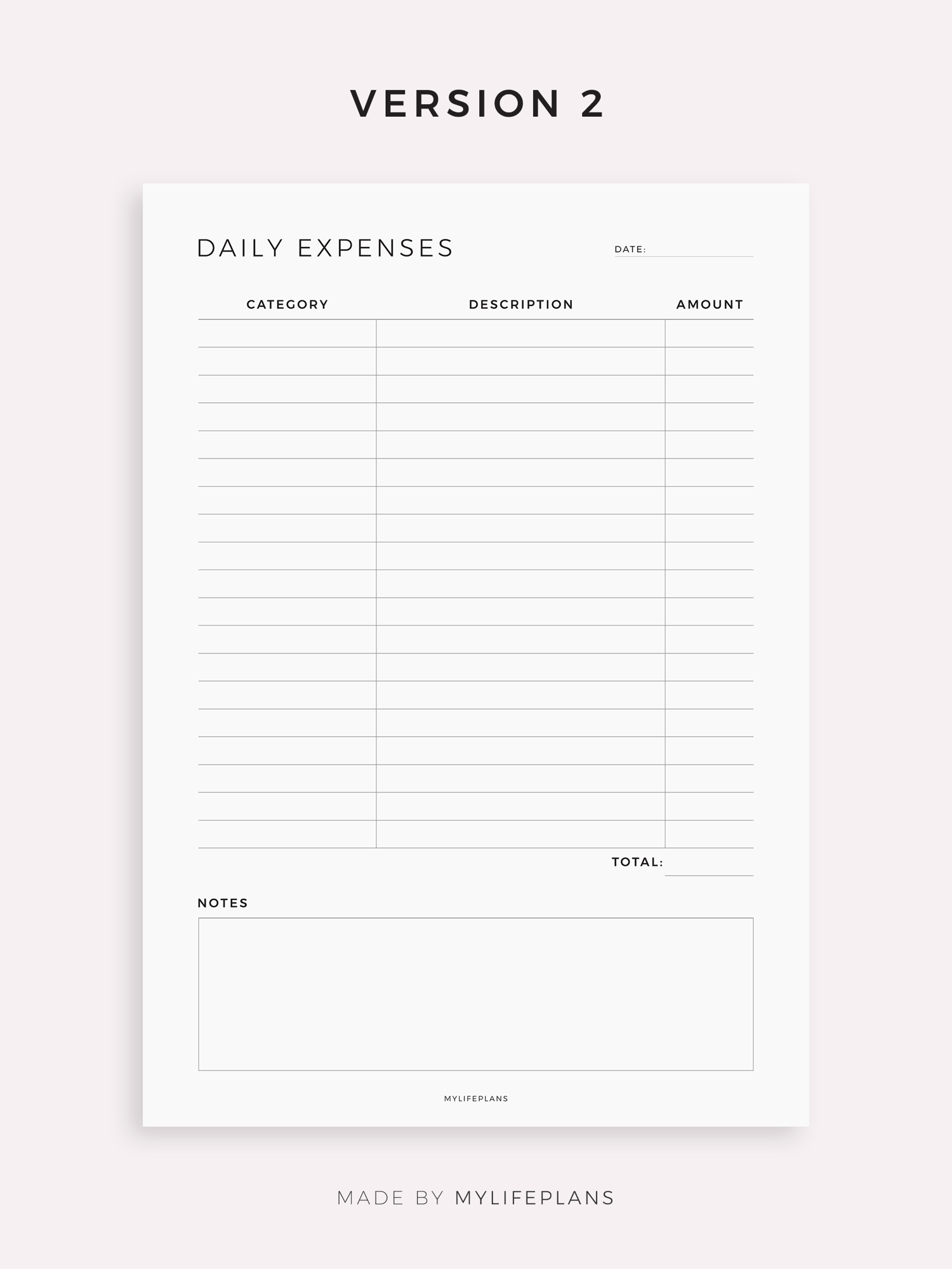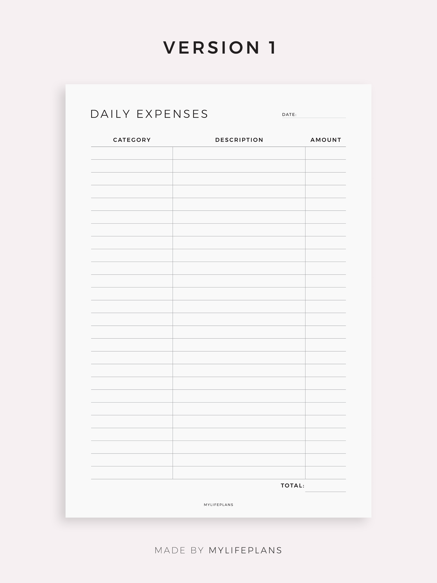 Daily Expenses Tracker Template for Remarkable, Supernote, Kindle Scribe, Boox, Kobo