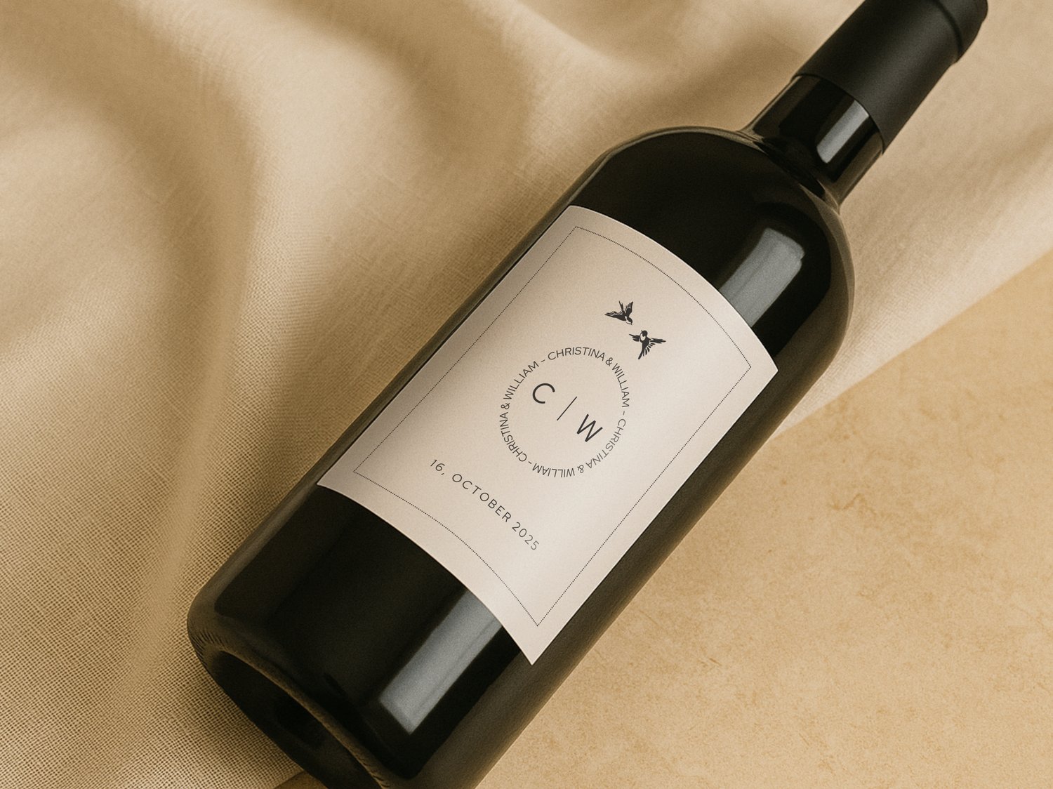 Monogram Wedding Wine Label Elegant Initial Design for Reception Table Decor Custom Bottle Sticker Personalized Initial Name Letter Wrap 010