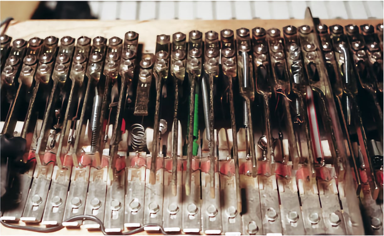It's a real Rhodes that is prepared as John Cage and others prepared an acoustic piano, that means you insert springs, plastic tubes, pins, etc., all kinds of objects inside the piano. These objects when touching the strings or the tines change the sound of each key played. All the notes can be radically different from each other and often you don't even recognize the original sound. You get an instrument that is much more percussive in nature.