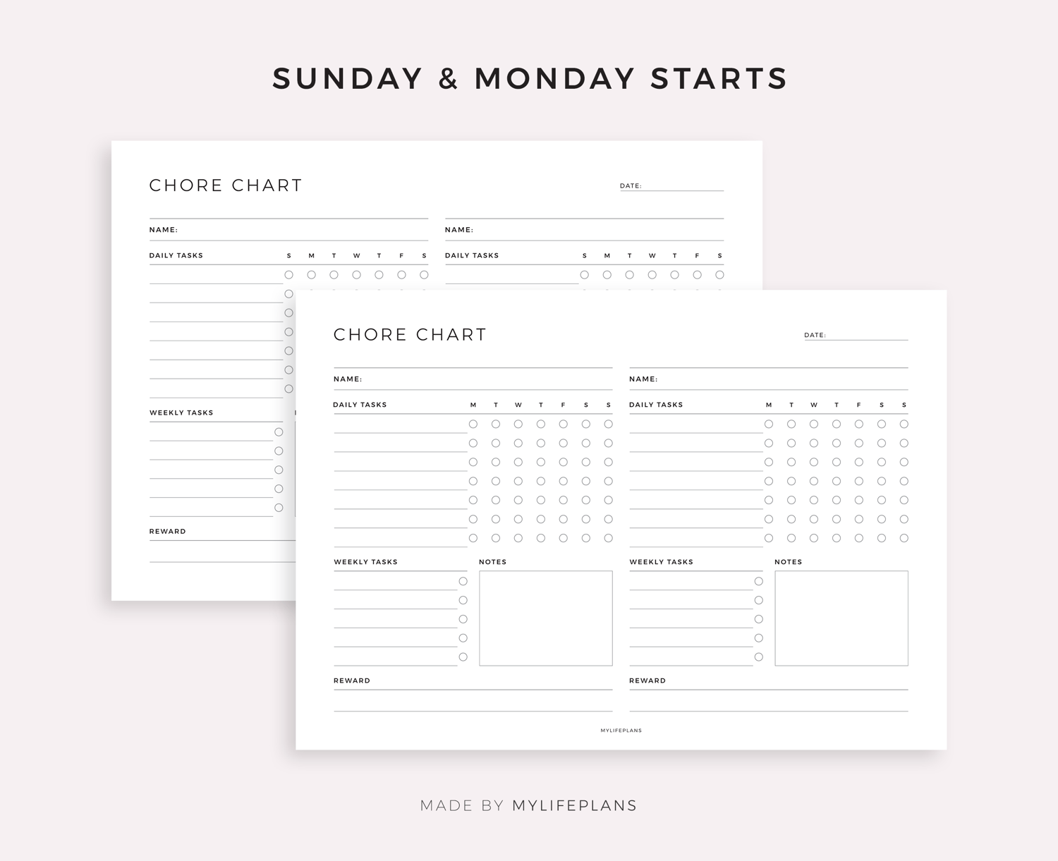 Chore Chart for 2 Kids / Adults, Digital Template for Goodnotes, Notability, Ipad