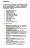 The "Health and Human Services, 51-State Resource Guide" provides the contact information (name, address, telephone number, website, and email, if available) of state agencies in 51 jurisdictions providing health and human services in the following 12 categories: