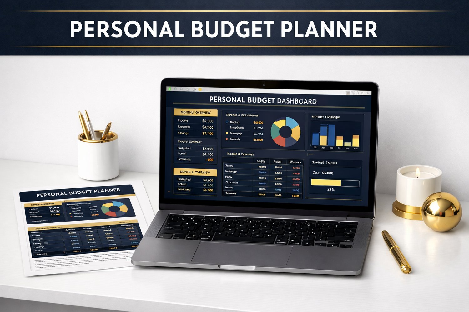 This professional Personal Budget Planner is a fully automated Excel spreadsheet designed to help you track income, manage expenses, build savings, and finally see where every dollar goes.