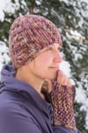 This hat is a little unique in its construction: it is worked sideways, with a cable to connect the hat in the round and finished off with an applied I-cord edge.