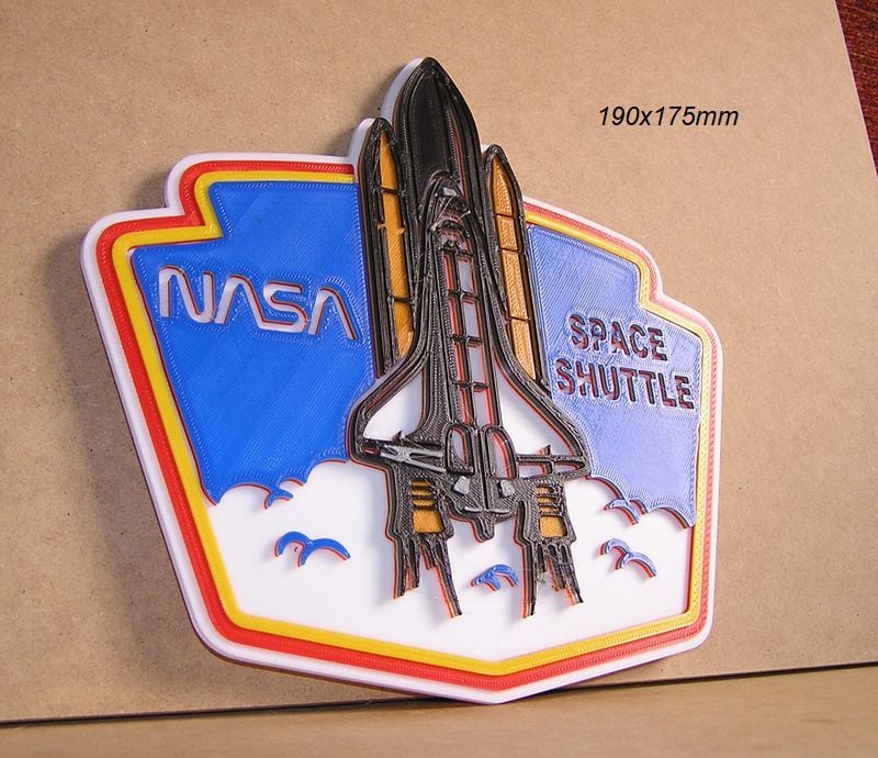NASA space shuttle-2 spacecraft, this files are made with an FDM printer and PLA filament and can be printed with any filament printer, the colors are programmed for an Elegoo Neptune 3 Pro printer