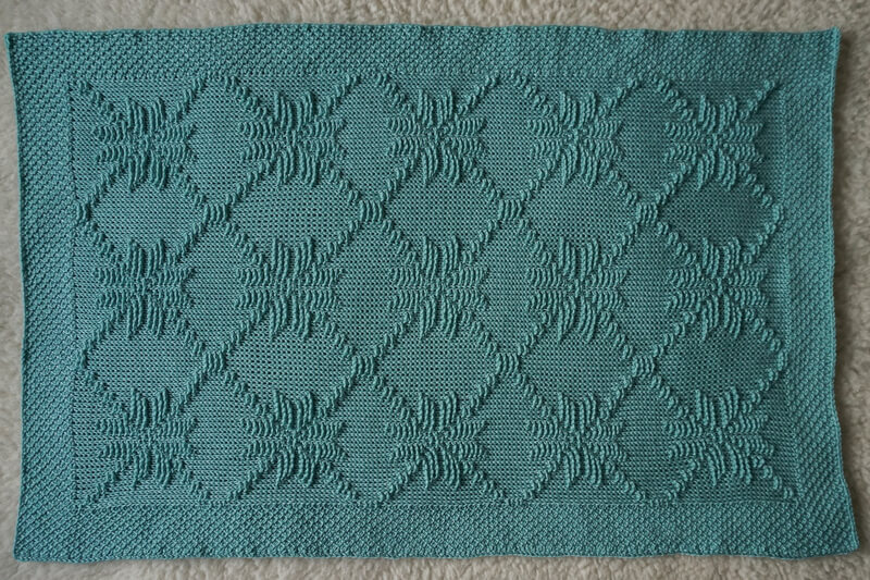A non-curling honeycomb border is included in the pattern and worked at the same time as the blanket.