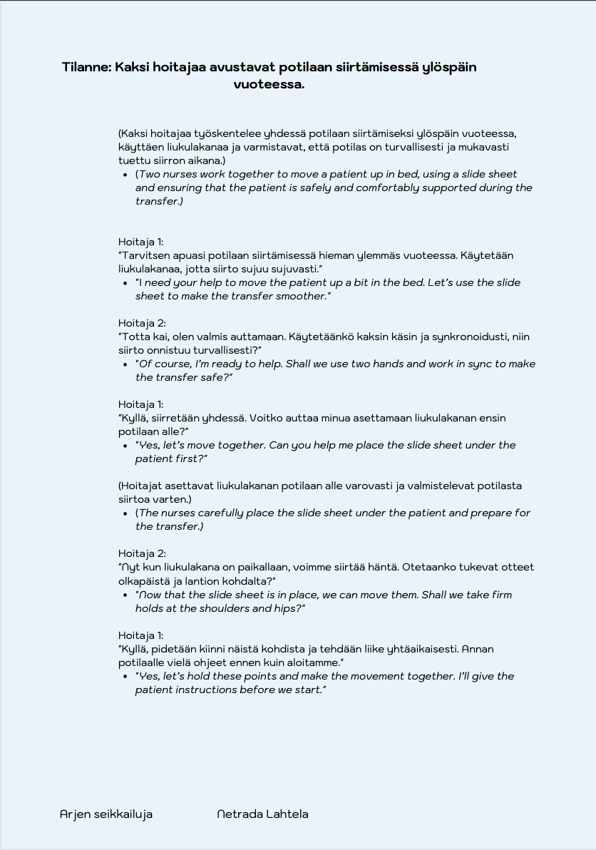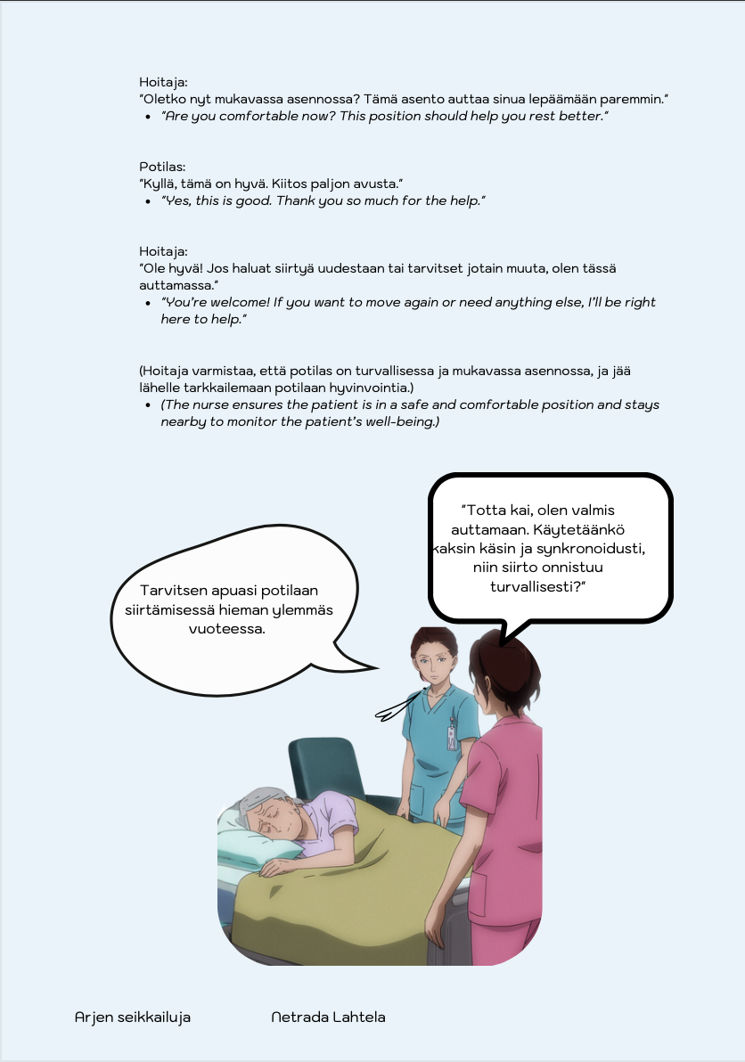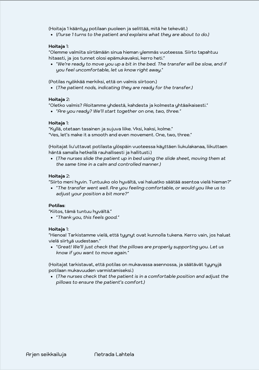 "Kinesthetics and Transfer Techniques in Elderly Care: A Practical Guide for Caregivers" Finnsh-Englis ans is 122 pangs.