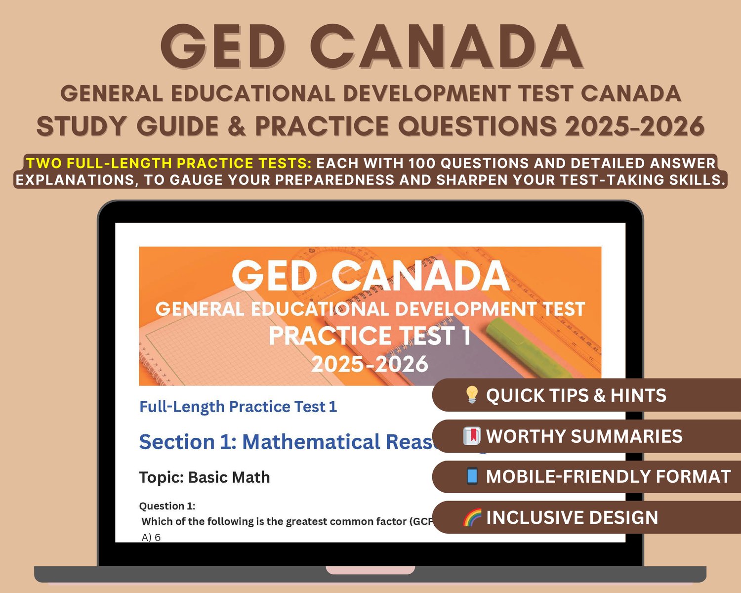 π GED Preparation Canada Study Guide 2025-2026 by Test Treasure Publication π