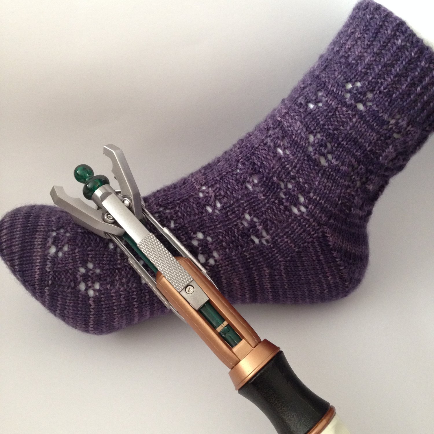 At that point, we decided that these socks demanded to be named something Doctor Who related and we came up with the name Rescue Me, Chin Boy, and Show Me the Stars from this quote: “Rescue me, Chin Boy, and show me the stars.” ~ “Clara” Oswin Oswald, Doctor Who 7.1 Asylum of the Daleks