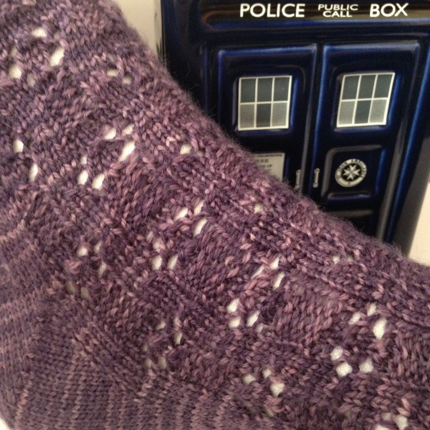 After getting a couple of pattern repeats in, I began to giggle & commanded the attention of my 13 year old daughter Damaris (who is also a knitter and a bigger Doctor Who fan than I am). I just had to show her what was happening.