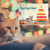 Christmas Holiday Card! Retro/midcentury modern with American Shorthair Cat! Instant download w/ unlimited uses! Envelope template included.