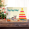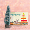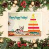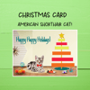 This is an adorable Christmas Holiday card that features a fancy American Shorthair cat enjoying his presents!