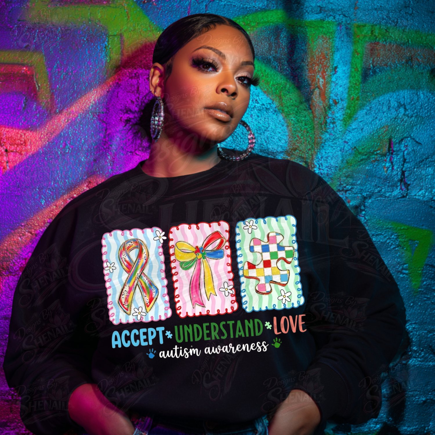 Autism Awareness PNG, Accept Understand Love Puzzle Ribbon Design, Neurodiversity Support Sublimation Print, DTF Shirt Design – Instant Digital Download
