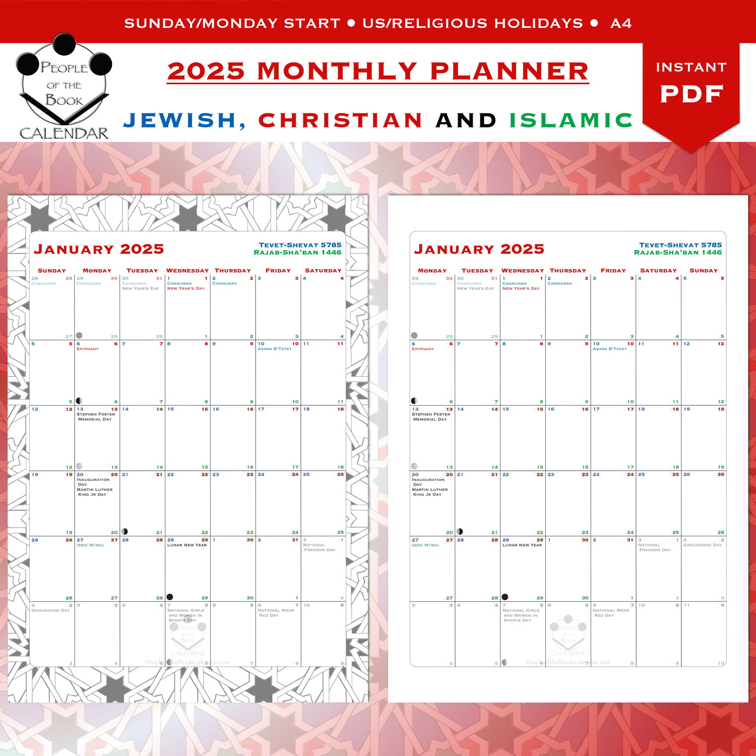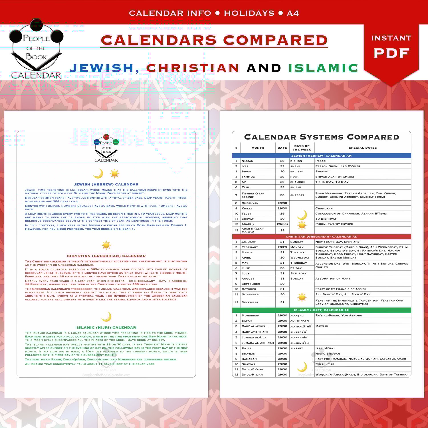 Jewish, Christian and Islamic calendars combined into one. I call it the People of the Book Calendar, referring to the "people of scripture", specifically that of the three Abrahamic monotheistic religions.
