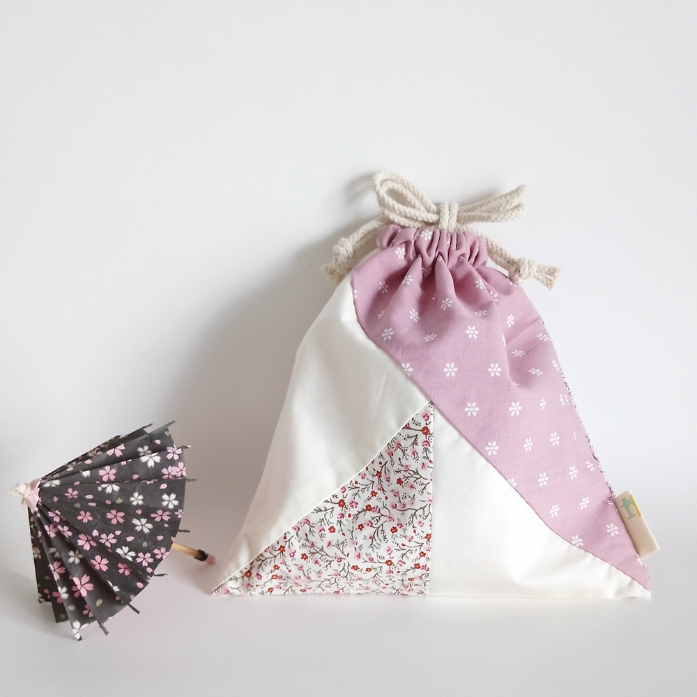 Japanese-style Patchwork Drawstring Bag (Lined ‧ Khaki drawstring)