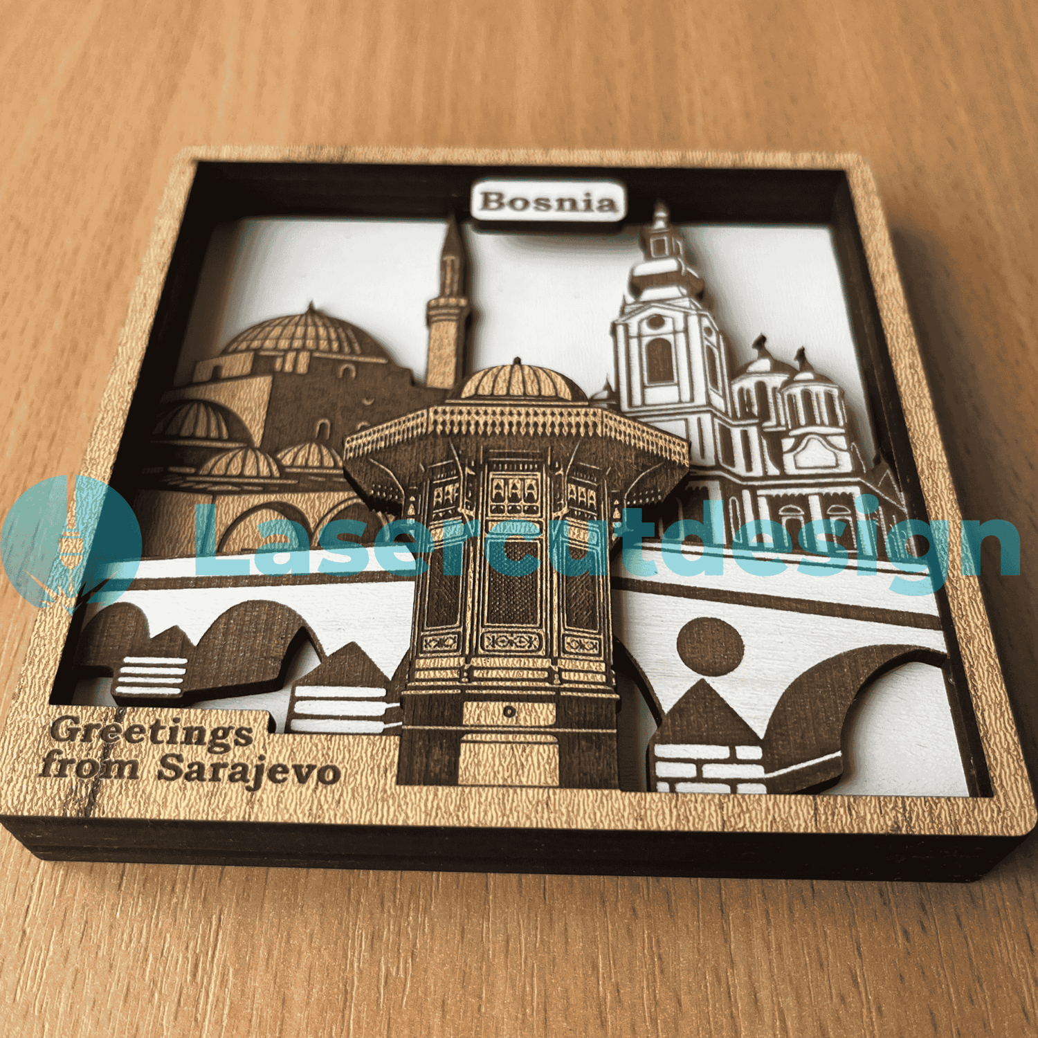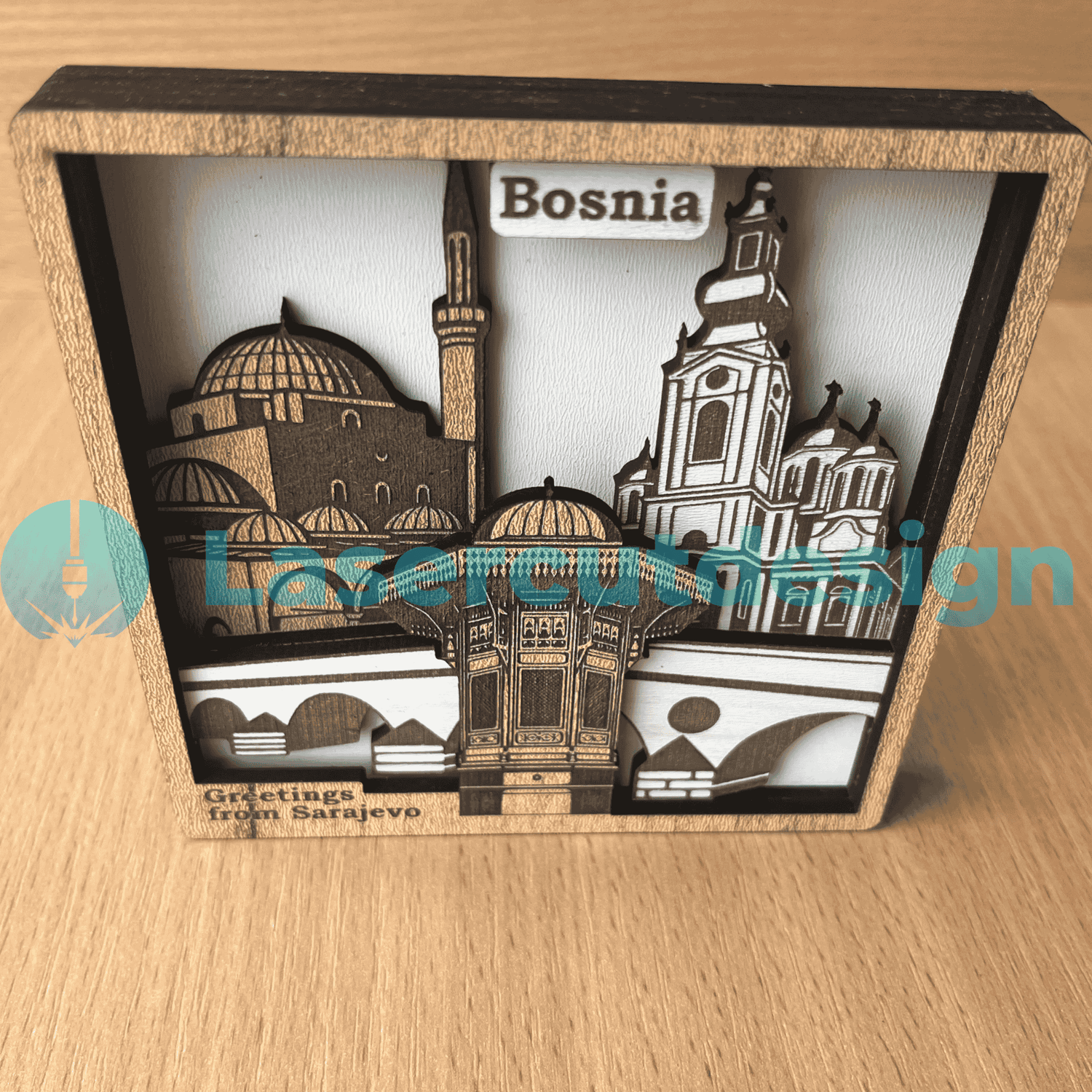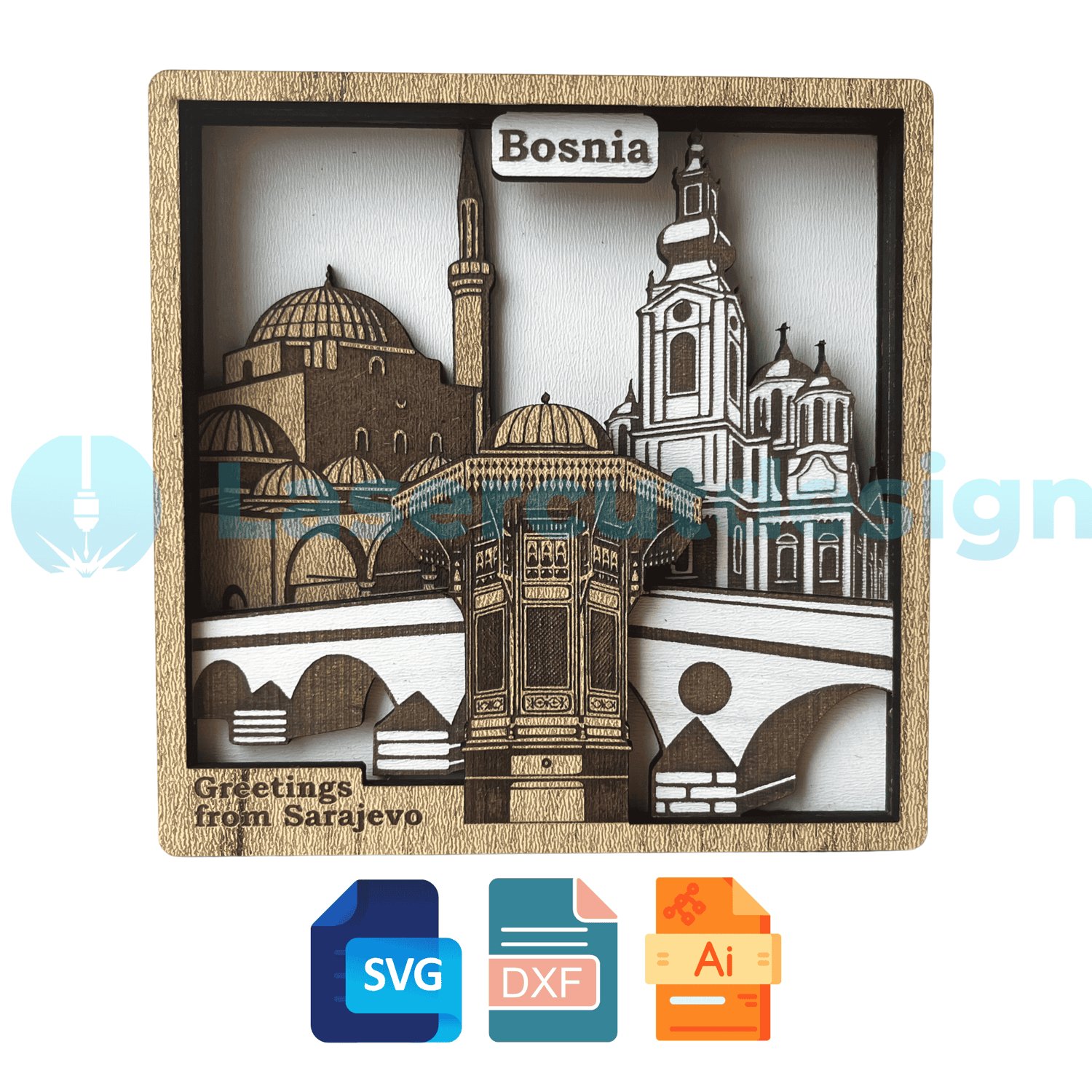 Sarajevo Bosnia Layered Map | Laser Cut Wall Art SVG DXF AI | Bosnia Souvenir 3D Shadow Box Template