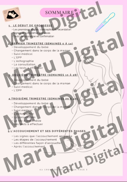 Vous y trouverez l’essentiel des rendez-vous médicaux, une petite description de chaque étapes de votre grossesse etc…