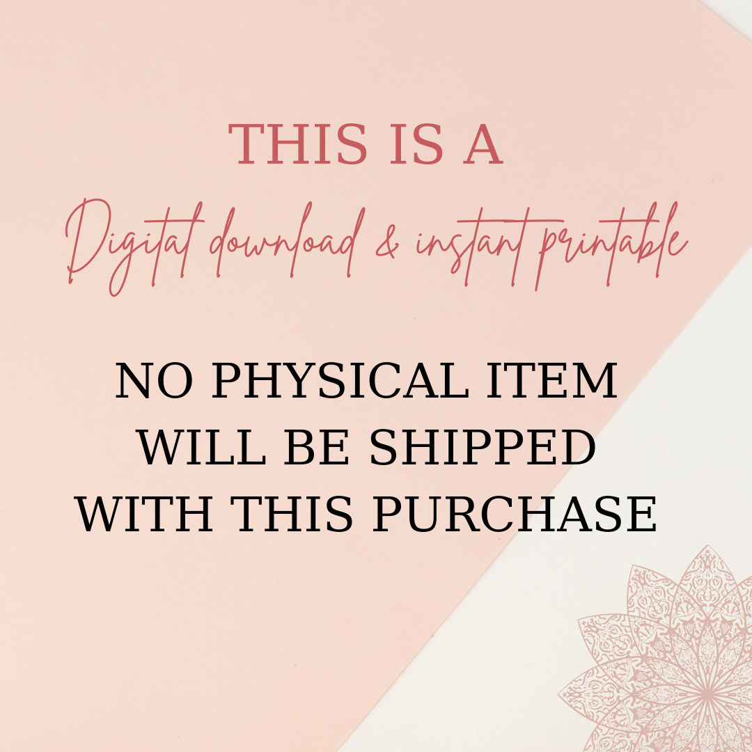 This is a DIGITAL DOWNLOAD listing and NO PHYSICAL PRODUCT will be mailed to you. To make it simple and convenient for you to print on your home printer right away: