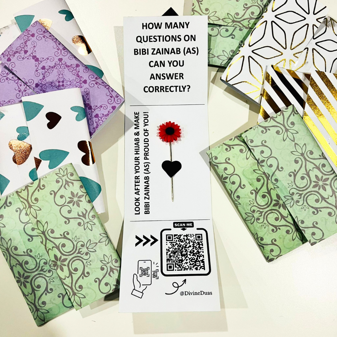 We hear so much about Bibi Zainab (as) and her rida. Hijab pins are a perfect majlis favor that will go hand in hand with a Q/A on Bibi Zainab (as) we have been working on this week. The packaging has a QR code to the Q/A. We hope you enjoyed watching our process of making this tabarruk favor for your majalis. Bibi Zainab (as) was Imam Sajjad (as) rock after Karbala and it was not easy to be one in the face of tragedy, hardship and torture on the way. Salam Ya Aqeela Bani Hashim - we strive to be courageous, unwavering and strong in our faith like you, and ready for our Imam of our Time. Labbaik 🤚