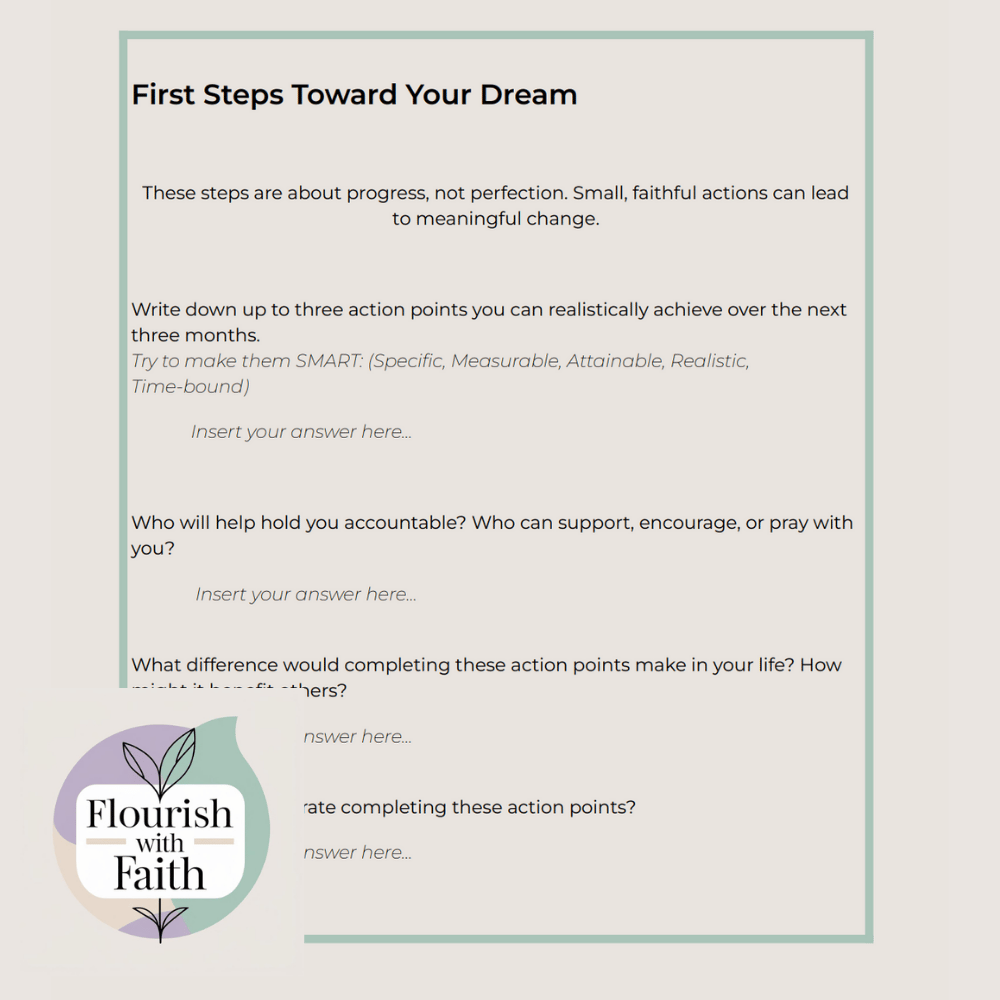 - Dream Exploration: Look ahead one year to identify the first steps God is calling you to take.