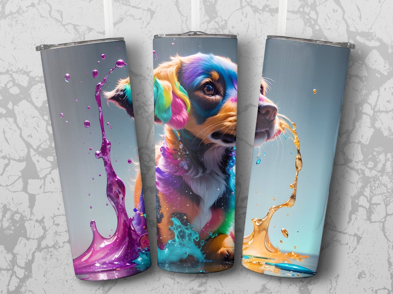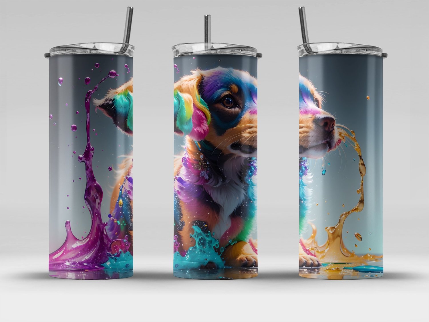 Splash Art Puppy 20 oz Skinny Tumbler Sublimation Design, Straight & Tapered Tumbler Wrap, Unique Gift Tumble Instant Digital Download PNG