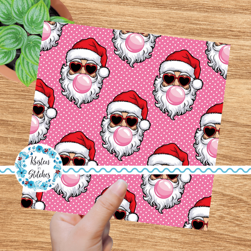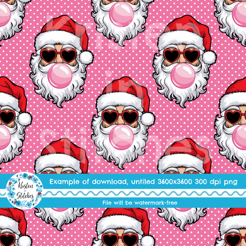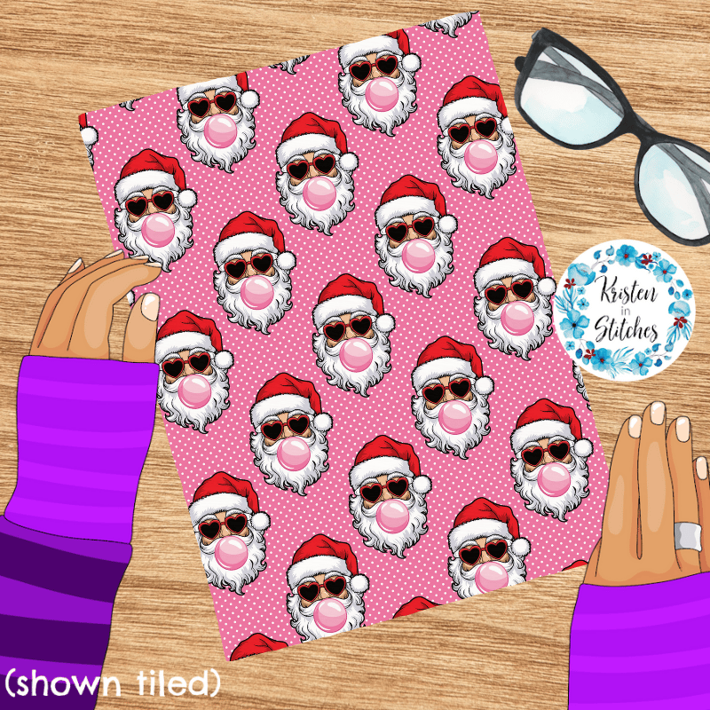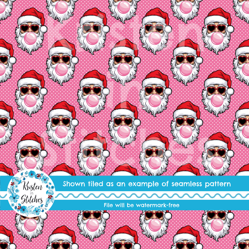 Bubblegum Santa Claus Christmas Seamless Pattern in Pink