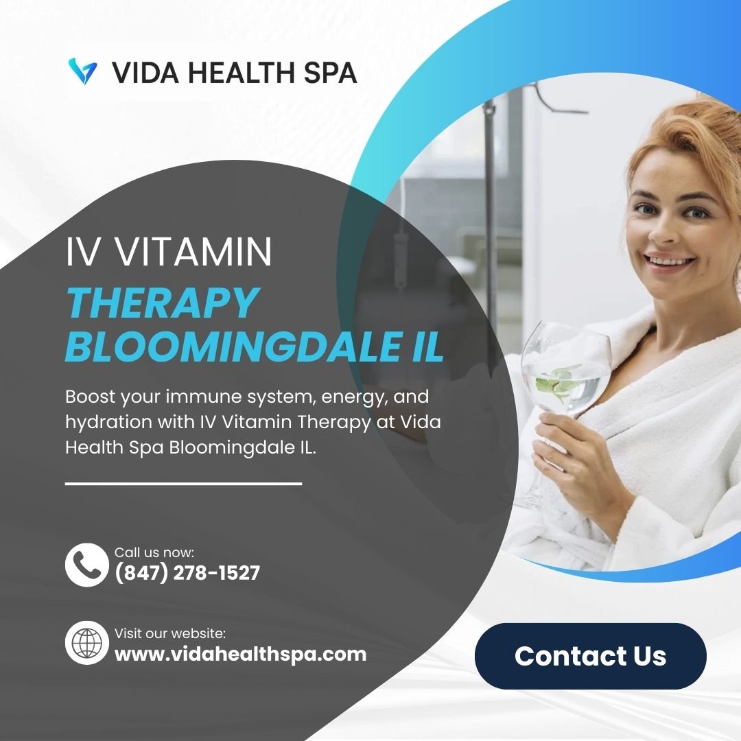 Boost your immune system, energy, and hydration with IV Vitamin Therapy at Vida Health Spa Bloomingdale IL. Our treatments deliver essential vitamins, minerals, and nutrients directly into your bloodstream for fast, effective absorption. Whether you need recovery from fatigue, dehydration, or want to support overall wellness, our customized IV drips provide the perfect solution. Discover the benefits of IV Vitamin Therapy with Vida Health Spa in Bloomingdale.