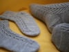 Pour ma part, Three Irish Girls, Adorn Luxe, coloris Dorian Gray ( 85% mérinos, 15% nylon, 393m pour 100gr). A titre indicatif j’ai utilisé : taille 23 et pointure 37 : 210 m ; taille 15 et pointure 23 : 125 m.