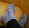 Une jolie paire de chaussettes inspirée par l’hiver, les sapins enneigés, les gros flocons de neige … Elles se tricotent en toe-up, on commence donc par les orteils et on termine par la cheville et en rond. Les explications sont données sur la base d’un tricot avec une aiguille circulaire sur le système du magic loop. Cependant, on peut très bien tricoter ces chaussettes avec deux aiguilles circulaires ou des aiguilles double-pointes.