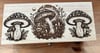 Large Hand decorated by laser with a durable laquer finish,velvet lined (Black or red) to keep what’s inside protected ..this box is great for anyone who collects crystals or cards.. and wants to keep them safe..