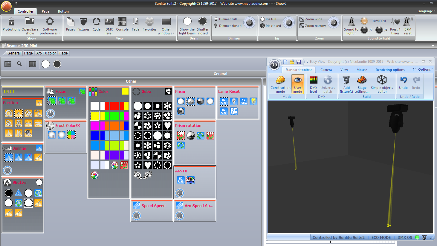 Librería de Sunlite Suite 2 P/ Beamer 250 Mini de Tecshow ( con Aro Led )