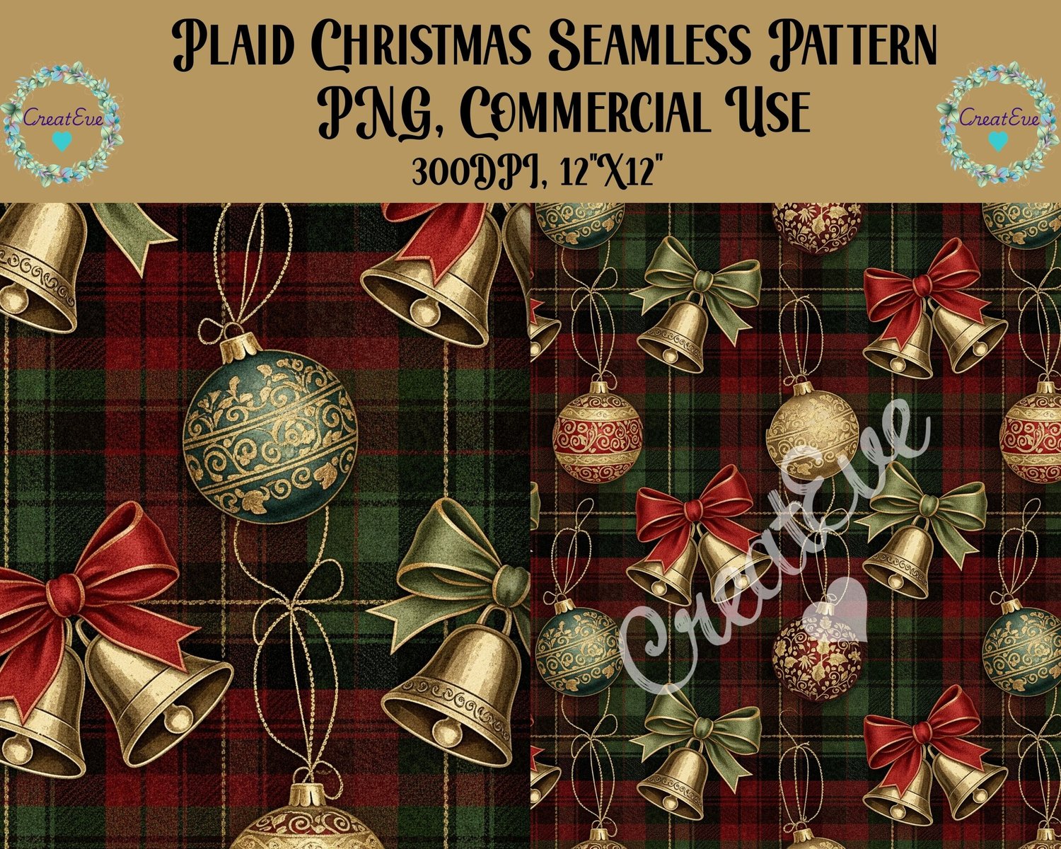 Christmas Plaid Seamless Pattern Commercial Use, 300dpi, 12"x12" PNG