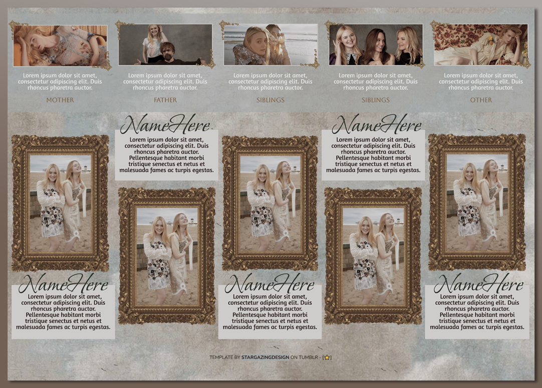 Placeholder pictures are of Ellie Fanning, colorized in Photoshop with my psd Ceres.