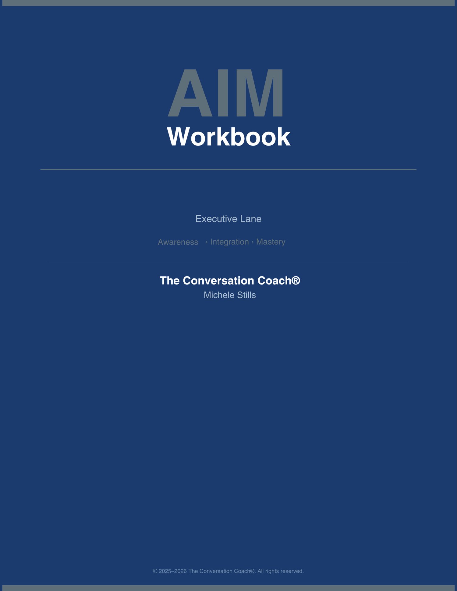 Built for executives and senior leaders, AIM takes you through three progressive tiers — Awareness, Integration, and Mastery — each building on the last to create lasting behavioral change, not temporary fixes.