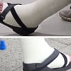 Thanks to his zipped trousers and the fact that he isn't wearing socks, we can see the white fiber cast and his bare toes in all their glory the entire time.