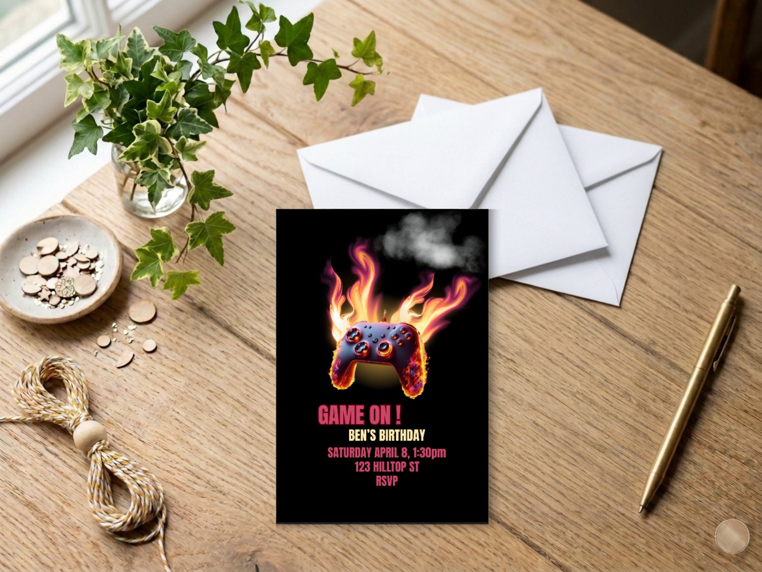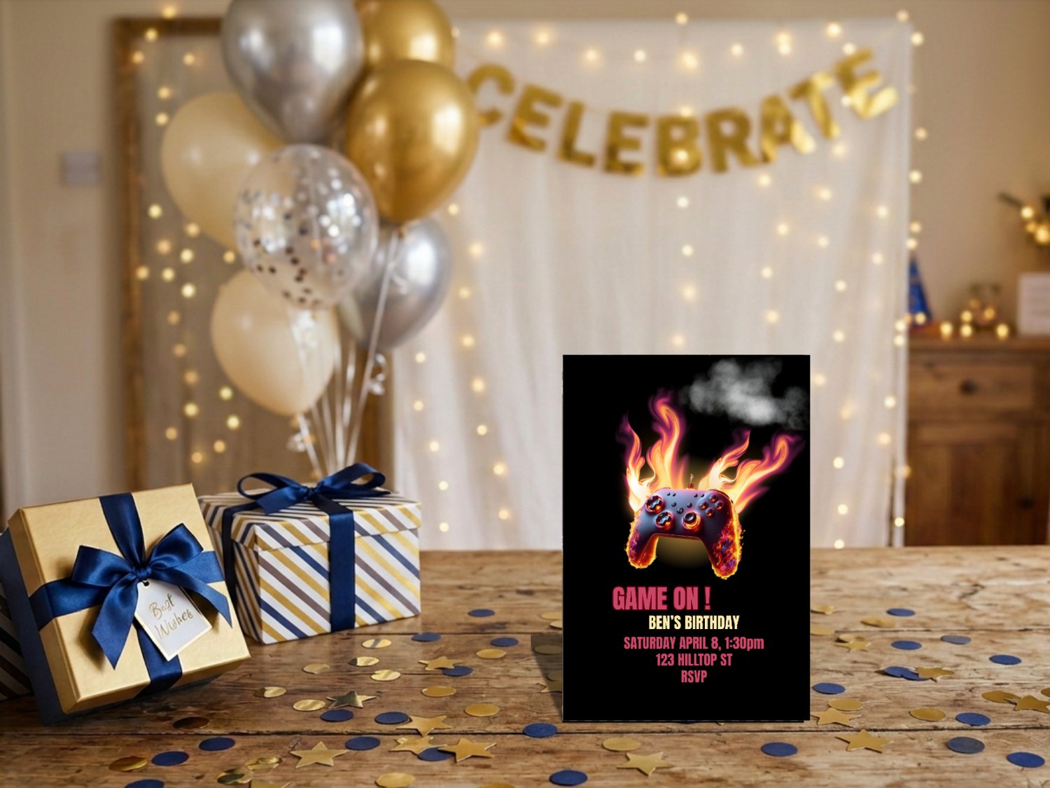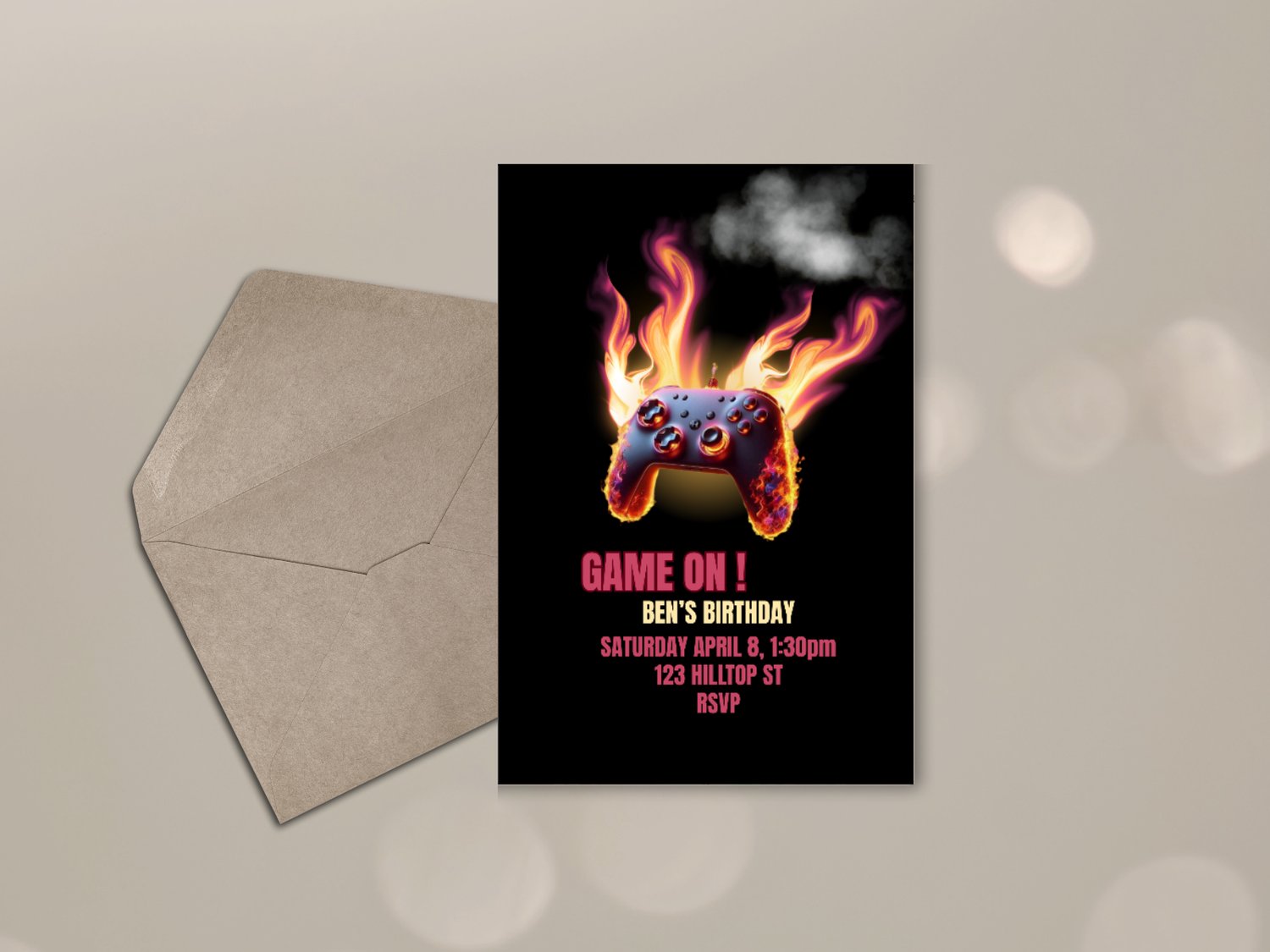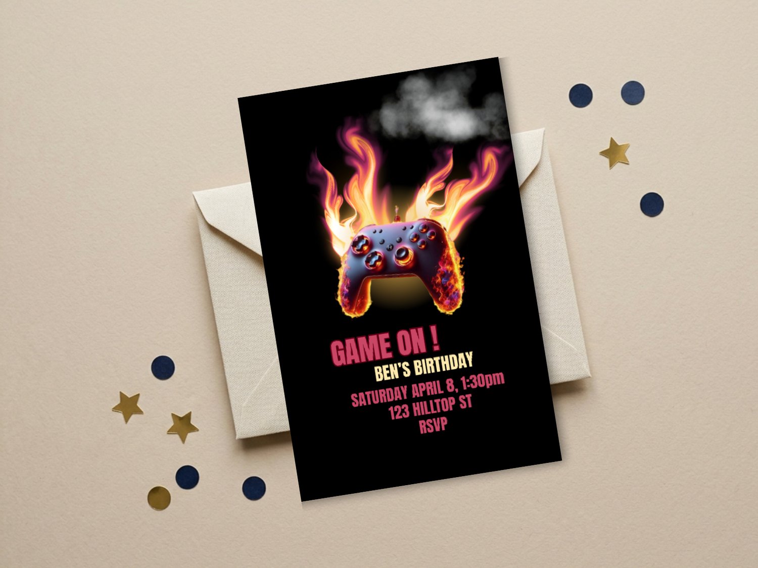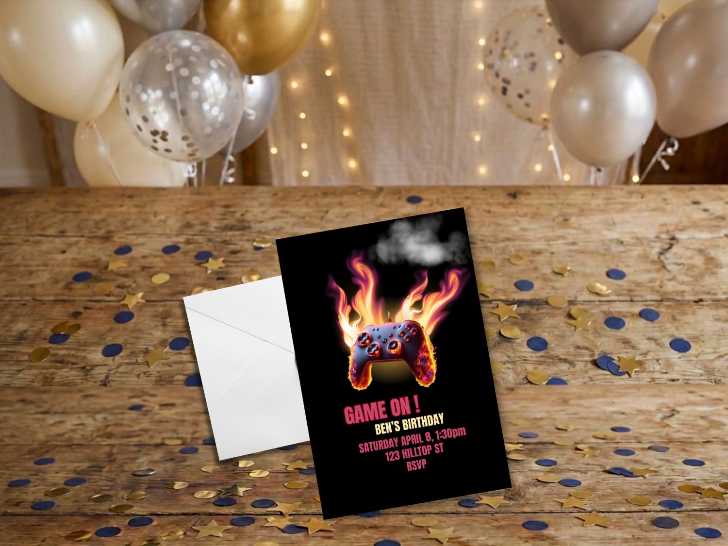 Struggling to find a birthday invitation that really captures your gamer’s excitement? This Game On Birthday Invitation is the perfect solution! Featuring a fiery game controller design and cool gamer vibes, this editable 5x7 Canva template makes it easy to create a fun, personalized invite that your guests will love. Customize the details, download instantly, and print at home or send digitally – no stress, no generic invites, and no last-minute trips to the store.