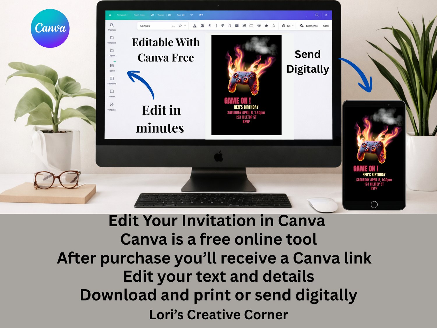 • Editable Canva Template – customize name, date, time, location, and more