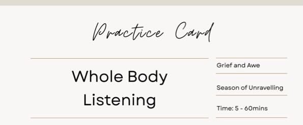 A simple 5–60 minute practice to ground, open your senses, and listen with your whole body — part of The Art of Unravelling’s seasonal cycle of grief, awe, and emergence.
