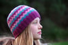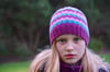 This is a snug and close fitting beanie with two options for working the crown; a simpler option and one for those more confident in reading their work. The second option creates a beautiful snowflake like crown.