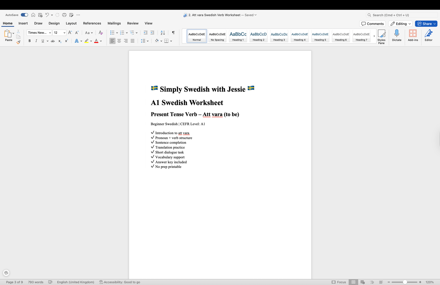 Introduce your learners to one of the most essential Swedish verbs with this structured A1 grammar worksheet focused on att vara (to be).