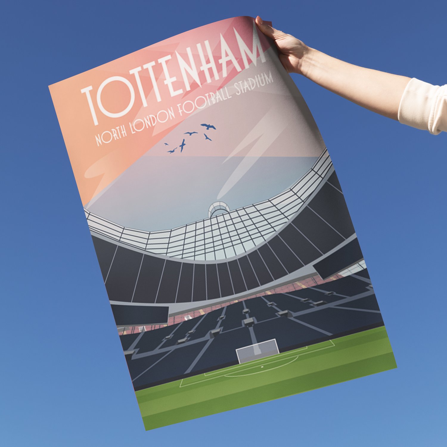 Celebrate the heart-pounding spirit of Tottenham Hotspur with this dynamic illustrated poster of the iconic Tottenham Hotspur Stadium! Perfect for fans, this digital wall art captures the stadium's legendary architecture and electric matchday atmosphere in vivid detail.