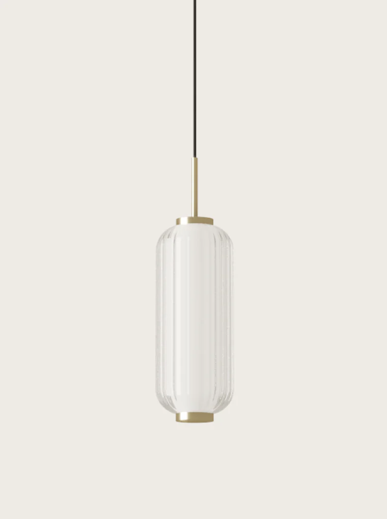 This luminaire combines refined finishes and quality materials for a contemporary and elegant interior lighting solution. The structure features matte black metal and matte brass details, complemented by glass shades available in striped glass, transparent acrylic, or opal finishes. Built with steel, glass, and acrylic, the fixture is both durable and visually striking. It integrates a 6W LED strip delivering warm 2700K light, creating a comfortable atmosphere. The light is TRIAC dimmable, allowing flexible control over brightness. With an IP20 rating and Class I electrical protection, it is designed for safe indoor use.