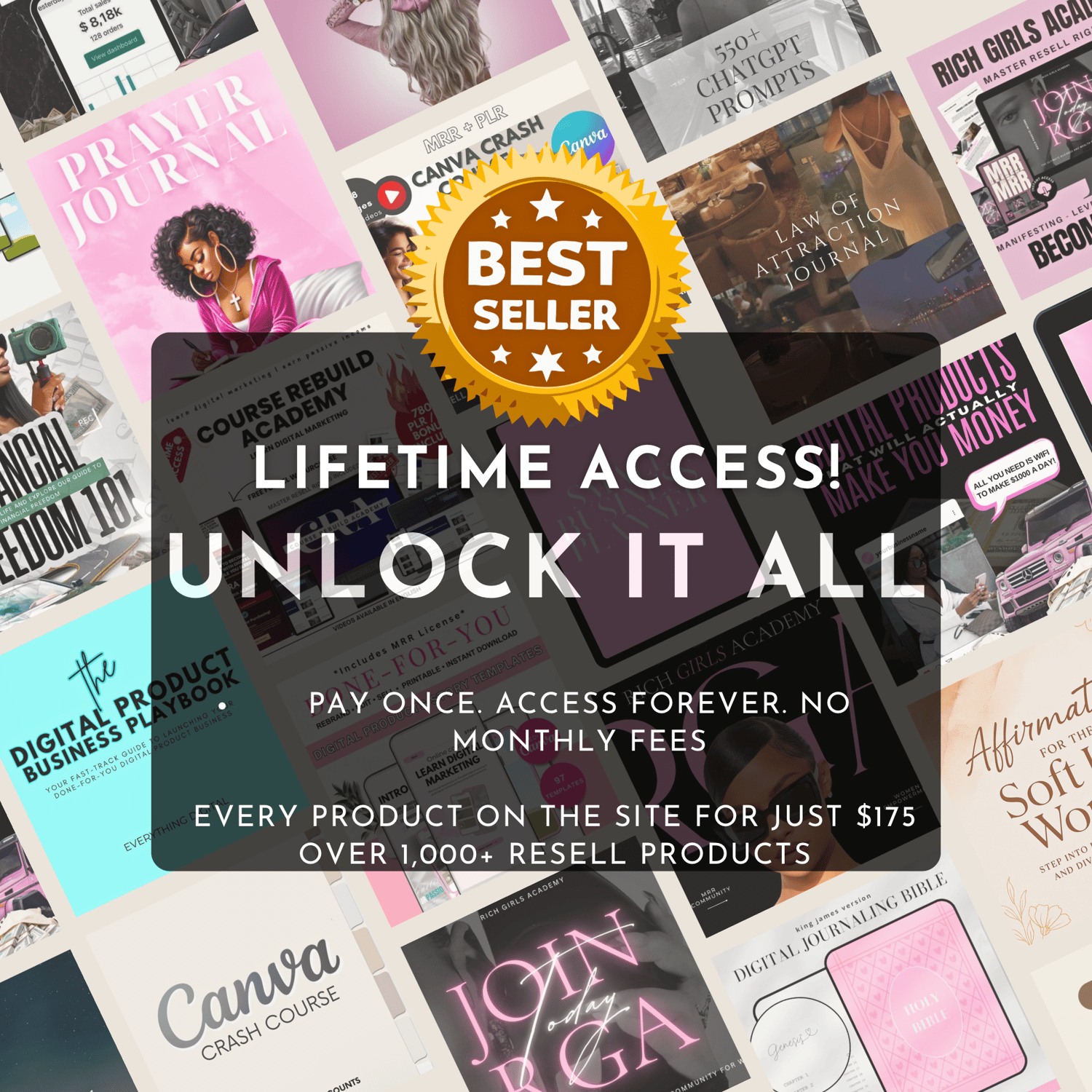 Unlock EVERY digital product, course, template, journal, and business tool I’ve ever created for just $175 — ONE TIME. No monthly fees. No limits. Just lifetime value.