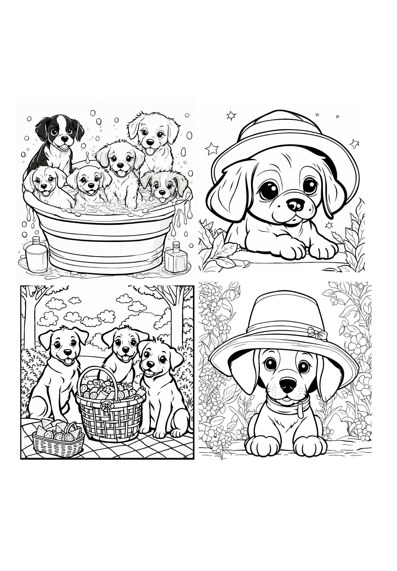 The collection includes 20 unique and detailed dog-themed illustrations, offering a wide selection for hours of coloring fun. Simple and intuitive design for easy navigation, suitable for children of all ages.