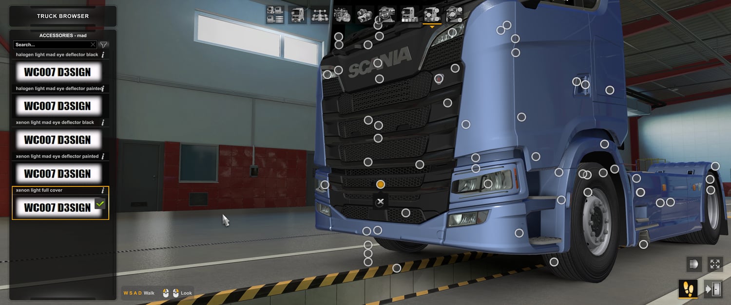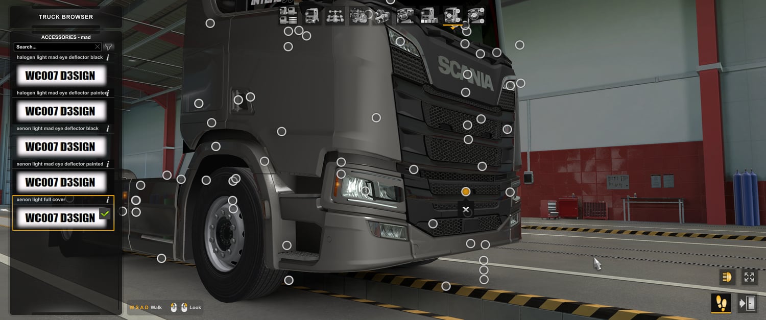 Scania NG full cover xenon light mod works only with Scania no spoiler mod V1 or Scania no spoiler mod V2 and not work with and Base game Scania truck
