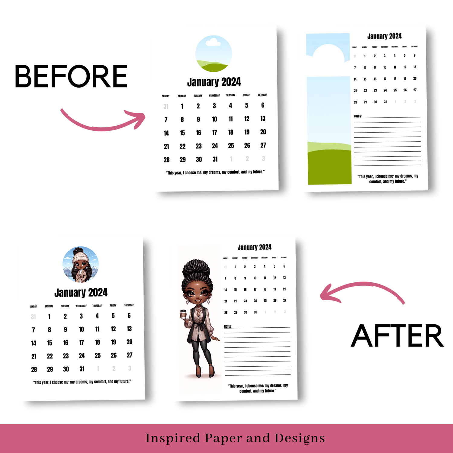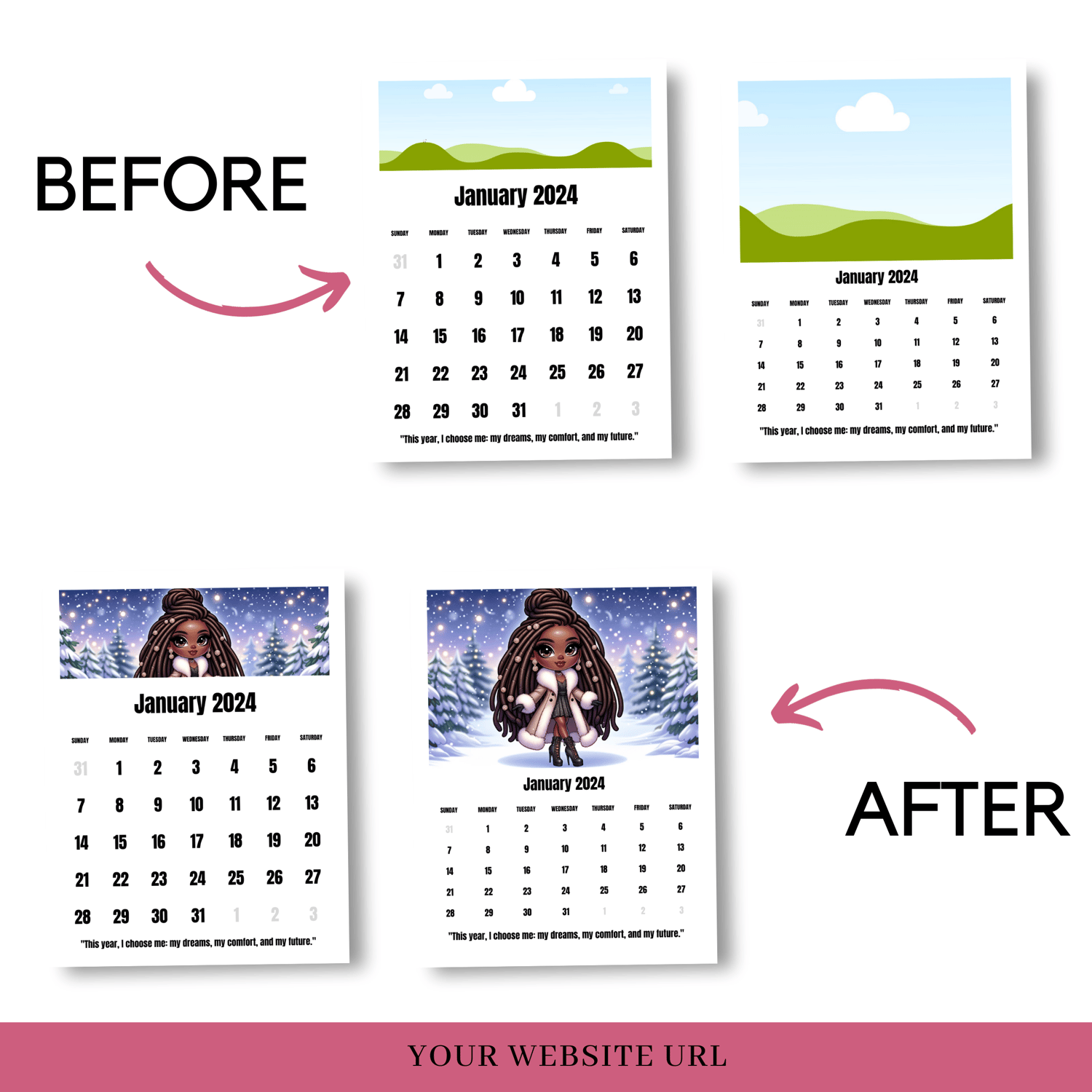 2024 Calendar Canva Template Frame Bundle | Set of 7 Editable & Customizable Templates | Instant Download | Commercial & Personal Use | Drag and Drop Your AI Art | PLR | DIY | Make Printable Calendars
