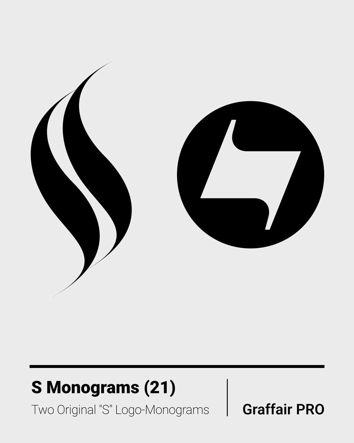 S Monograms (21): The 21st set of two original "S" logo monograms, included in the "1050 SVG Monograms" super bundle, which also features an Index catalog.