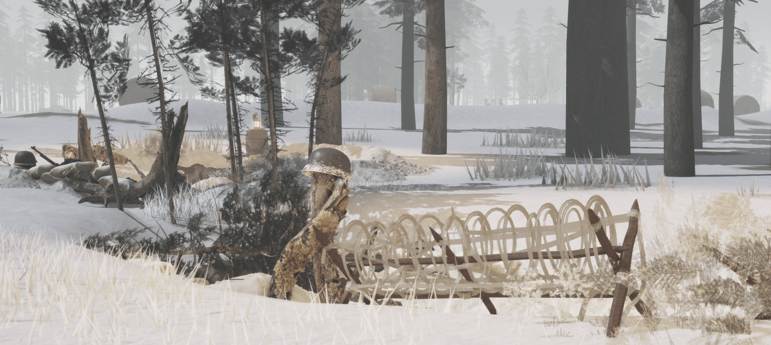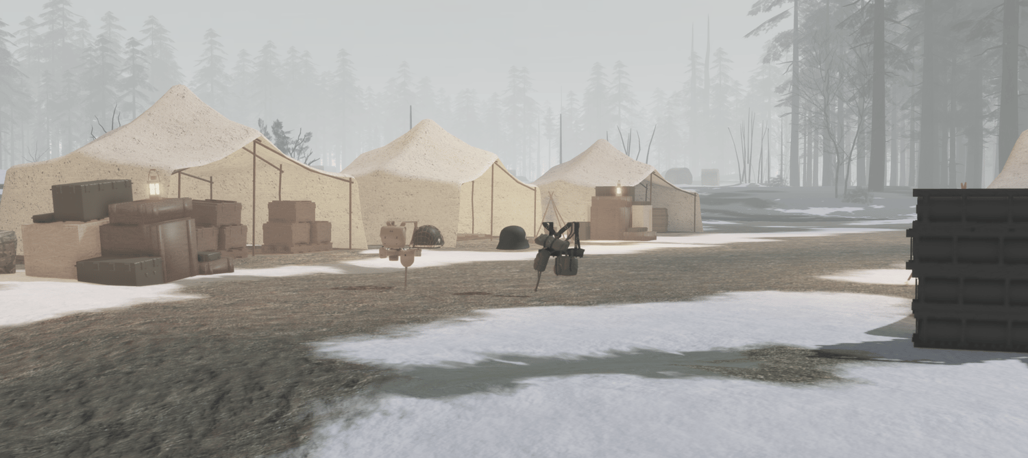A cold, winter‑scarred recreation of the Siege of Bastogne, placing players in the heart of one of WWII’s most desperate battles. Snow‑covered forests, entrenched positions, and battered buildings capture the harsh conditions of 1944 as American forces fought to hold the surrounded town. Detailed terrain, fortifications, and historically inspired structures create an immersive battlefield where strategy and teamwork matter. Perfect for players who enjoy tactical combat, historical scenarios, or gritty winter warfare environments.