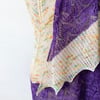 The size of the Electric Violet shawl can be changed by using lighter or heavier yarn and/or working fewer (or more) repeats of the various sections of the shawl. This will, of course, change the amount of yarn needed.