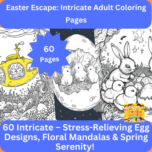 Easter Escape: 60 Intricate Adult Coloring Pages – Stress-Relieving Egg Designs, Floral Mandalas & Spring Serenity!