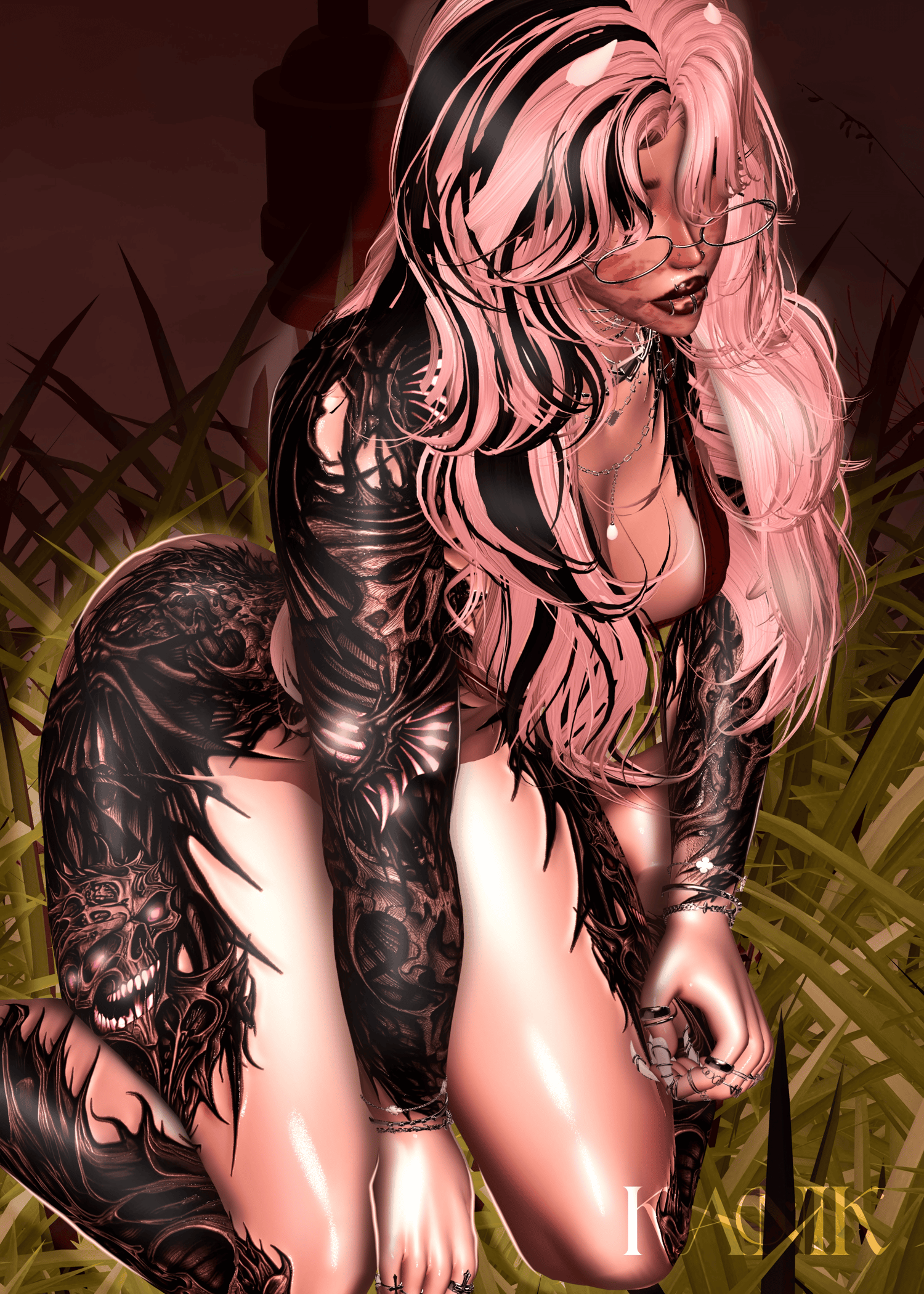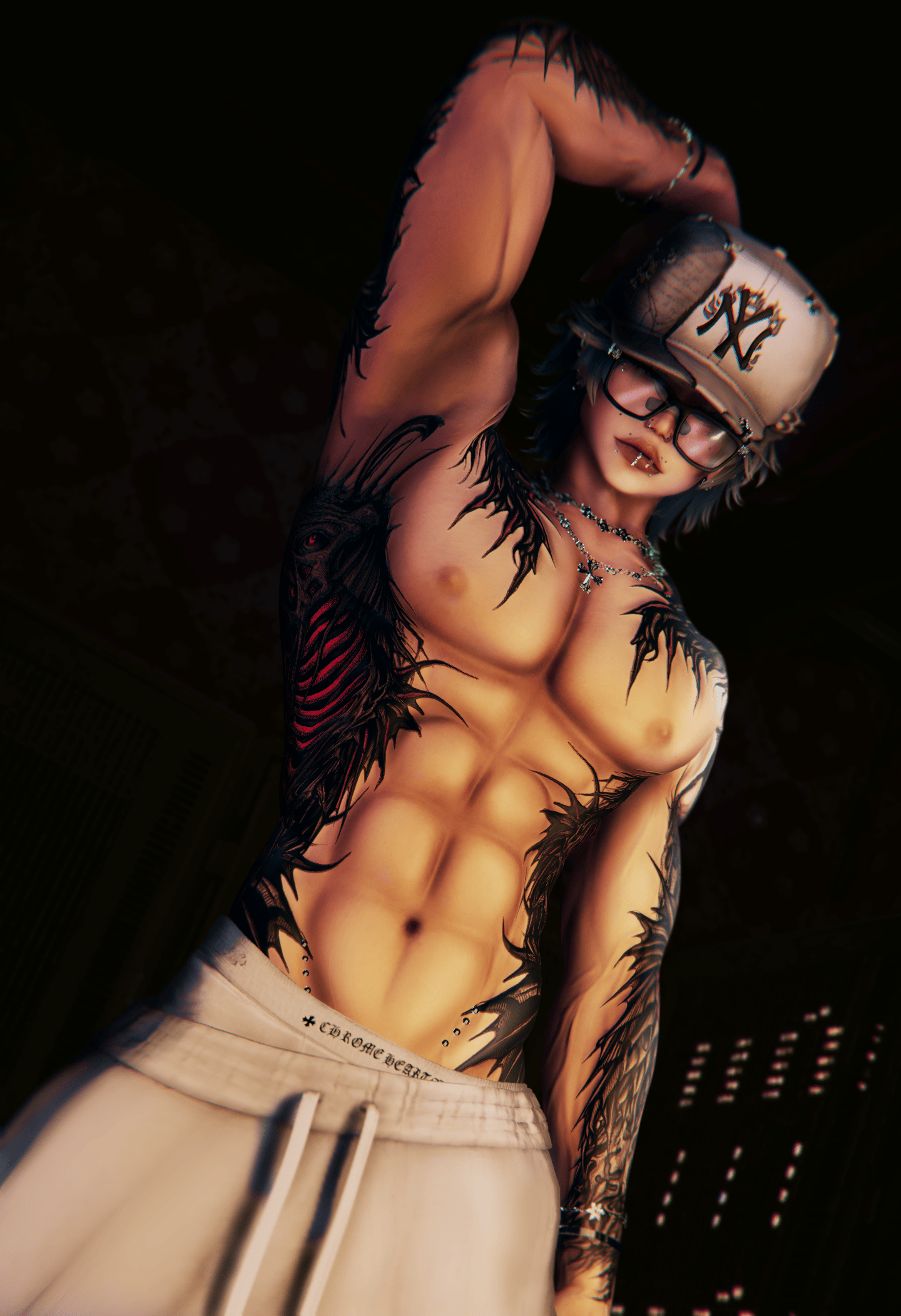 ♡ INCLUDED IN PACKAGE texture maps: (body) with layered tattoos , Emissions map, Normal maps, unity package with custom settings.